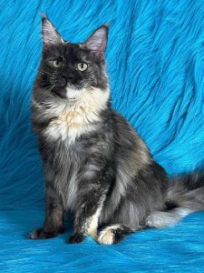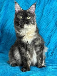 Agatha’s long, silky fur, tufted ears, and fluffy tail highlight the magnificent appearance of Maine Coon kittens. Her beautiful green eyes shine with curiosity, and her friendly, outgoing personality will capture your heart. Even at just a few months old, Agatha already possesses the grace and charm that make Maine Coons such cherished companions.