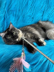 Meet Agatha, a stunning Maine Coon kitten who is the perfect blend of elegance and playfulness. With her luxurious coat and affectionate nature, she’s a true representation of this popular breed, ready to bring endless joy and love into your home.