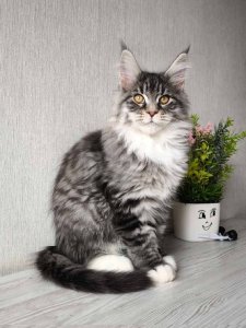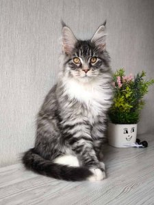 Meet Amadeus, the magnificent purebred Maine Coon kitten whose regal looks are perfectly matched by his lively and affectionate personality. With his luxurious fur and striking features, Amadeus is ready to steal your heart and fill your home with joy.