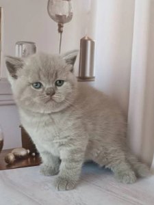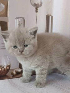 At just a few months old, Amina already shows the hallmark traits of the Scottish Straight kittens — including her perky straight ears, round and sweet face, and a gentle, cuddly nature that makes her the perfect lap companion.