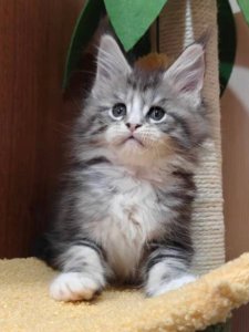 Meet Ariela, a majestic Maine Coon kitten who blends beauty, charm, and a lively spirit into one irresistible package. With her flowing fur and captivating green eyes, Ariela is a stunning young lady destined to rule your heart.
