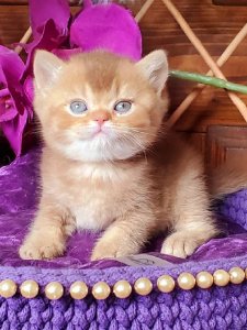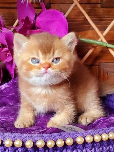 With her short, plush coat, round face, and signature chubby cheeks, Baila beautifully embodies the classic charm of British Shorthair kittens. Her large, expressive eyes seem to sparkle with kindness and curiosity.