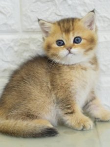 Barni’s short, velvety fur and adorable round face with chubby cheeks make him a true standout among British Shorthair kittens. His large, expressive, odd-colored eyes add a unique touch to his already captivating appearance. Even at just a few months old, he already displays the classic charm of his breed.