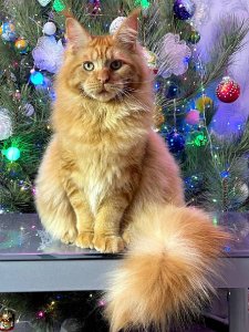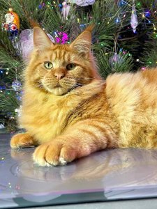 At just a few months old, Barry is already showcasing the hallmark traits of a Maine Coon kittens: luxurious long fur, tufted ears, and a fluffy tail that adds to his regal charm. His expressive green eyes sparkle with curiosity and mischief, reflecting his playful and adventurous personality.