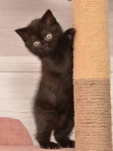 At just a few months old, Bastet already showcases the hallmark features of Scottish Straight kittens. Bastet’s large, round eyes shine with curiosity, and her plush, silky coat makes her as stunning as she is soft. Well-socialized and incredibly friendly, she adores human companionship and gets along beautifully with children and other pets.