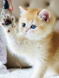 Beyli’s plush, short coat, round face with chubby cheeks, and those wide, expressive eyes make her a picture-perfect example of a British Shorthair kittens. Even at just a few months old, she carries the calm grace and sweet temperament that define this iconic breed.
