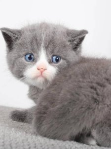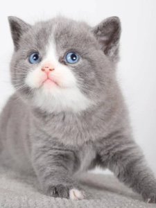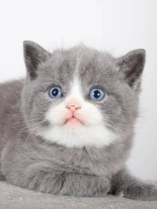 Even at just a few months old, he already shows the hallmark features of the beloved British Shorthair kitten—a round face with chubby cheeks, large expressive eyes, and a calm, affectionate personality.