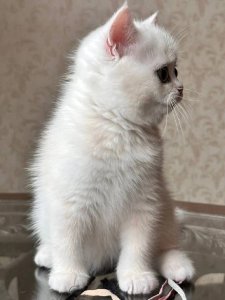 Boris’ short, plush coat, round face with chubby cheeks, and large, expressive eyes are the perfect representation of the British Shorthair kittens. At just a few months old, he already embodies the classic features that make this breed so adored.