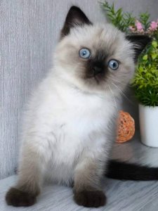 Boss’s plush fur and round face, framed by bright, expressive eyes, make him irresistibly adorable. His straight ears give him the signature look of the Scottish Straight kittens, while his playful yet loving nature ensures he’ll be a devoted companion. Even at a young age, Boss carries himself with confidence and charisma, always ready for fun and cuddles.