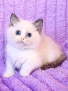 Introducing Candy, the Ragdoll kitten with a heart as soft as her plush, fluffy coat. Her striking blue eyes and affectionate nature will capture your heart and become the center of attention in any home.