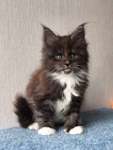 Introducing Chantal, a purebred Maine Coon kitten whose stunning looks and larger-than-life personality make her truly unforgettable. With her long, luxurious fur, beautifully tufted ears, and expressive green eyes, Chantal is already turning heads—and she’s only a few months old!