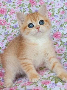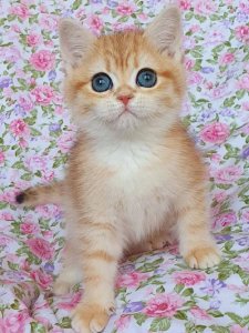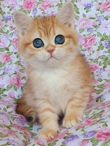 At just a few months old, Cheesecake already showcases the hallmark features of Scottish Straight kittens. With her plush, silky coat and large, expressive eyes, Cheesecake is a picture-perfect beauty. She is incredibly friendly and will get along wonderfully with children and other pets, making her the ideal companion for any home.