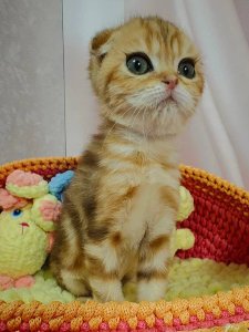 At just a few months old, Chester already displays the hallmark traits of the Scottish Fold kittens. His soft fur and adorable round face make him a true delight to be around, while his calm and loving demeanor will fill your home with joy.
