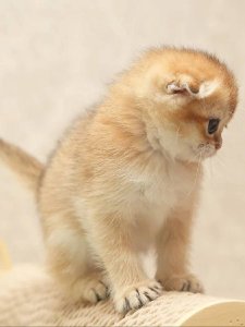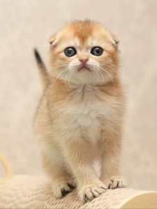 Meet Clarence, a purebred Scottish Fold kitten whose signature folded ears and plush coat make her utterly enchanting. With her round, chubby face and big, soulful eyes, Clarence exudes warmth and affection from the very first cuddle.