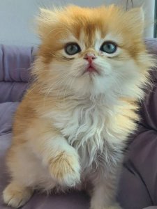 With her long, silky fur, chubby cheeks, and wide, expressive eyes, Dafna already shines with the classic beauty of her breed. She’s just a few months old, yet carries the quiet confidence and affectionate nature that make British Longhairs so beloved.