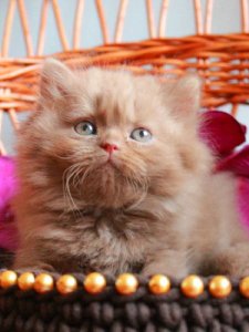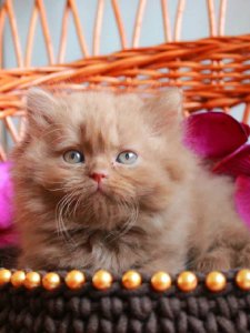 Darina’s stunning deep green eyes glimmer with warmth and curiosity, perfectly complemented by her round face and adorable chubby cheeks. Her silky, long fur showcases the exceptional qualities of the renowned British Longhair kittens, making her a truly exceptional feline beauty.