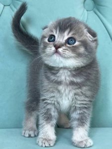 Her signature folded ears, round little face, and bright expressive eyes perfectly embody the beauty of Scottish Fold kittens. Even at just a few months old, Dasha already shows the delightful traits that make this breed so beloved worldwide.