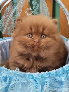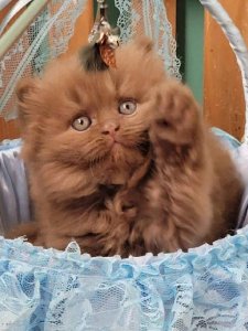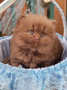 Dear Dar’s fluffy coat, round face, adorable chubby cheeks, and large expressive eyes reflect the timeless beauty of the British Longhair kittens. Even at just a few months old, he already embodies the grace and hallmark traits that make this breed so special.
