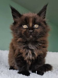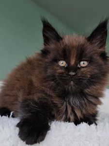 Even at just a few months old, Dendy displays all the hallmark traits of Maine Coon kittens—robust size, expressive green eyes, and a curious, spirited personality. Whether he’s leaping after a toy or curling up beside you for a nap, Dendy brings both playful energy and soothing purrs to every moment.