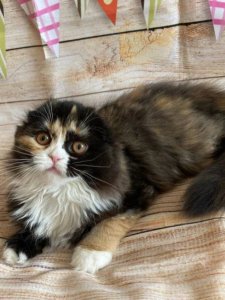 Meet Dominika, a captivating Highland Fold kitten who enchants everyone with her adorable looks and affectionate personality. With her soft, fluffy coat and playful spirit, she’s ready to bring love and joy to her forever home.