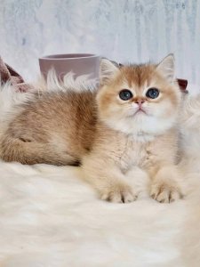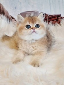Elai’s round face, chubby cheeks, and large, expressive eyes are the hallmark features of British Shorthair kittens. His affectionate nature and timeless charm make him an irresistible addition to any home.