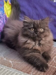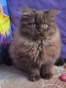 Meet Elli, the adorable British Longhair kitten with a calm and gentle personality. Her long, silky fur, round face with chubby cheeks, and large, expressive eyes make her a picture of feline elegance and charm.