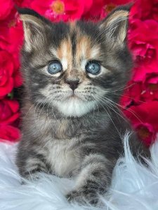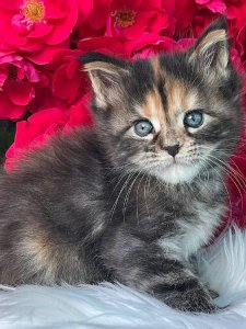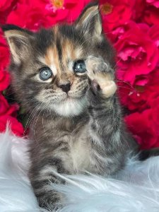 Say hello to Emma, the majestic and playful purebred Maine Coon kittens who perfectly captures the essence of this adored breed. With her striking beauty and affectionate charm, Emma is sure to become the queen of your heart.