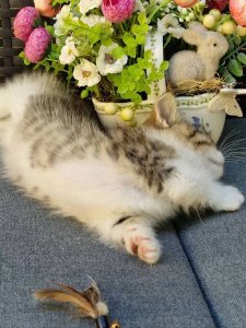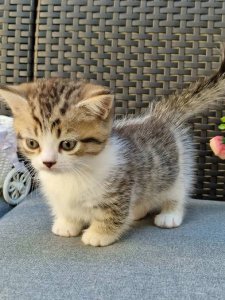 Enotic’s short legs and long body, coupled with his round eyes and plush coat, showcase the signature traits of Munchkin kittens. Even at just a few months old, he’s energetic, always ready to play with toys, explore his surroundings, and snuggle up for cozy moments.