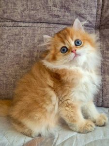 With his silky, long fur, chubby cheeks, and large, soulful eyes, Erik already displays all the hallmark traits of the British Longhair breed. Even at just a few months old, his calm and loving nature makes him an irresistible presence.