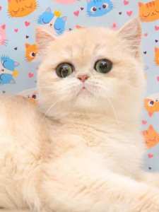 Eva’s velvety fur and serene expression embody the timeless elegance of British Shorthair kittens. Her round face, complete with chubby cheeks and expressive, soulful eyes, reflects the beloved qualities of this classic breed. Even at a young age, Eva radiates the charm that British Shorthair admirers adore.