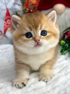 Ferrari’s velvety fur, chubby cheeks, and round face are the epitome of British Shorthair kittens. His large, expressive eyes and cuddly nature make him a joy to be around. At just a few months old, Ferrari already shines as a classic representative of his breed, full of love and sweetness.