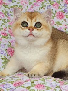 At just a few months old, she already shines with all the signature features of British Shorthair kittens—a plush, dense coat, an adorably round face with chubby cheeks, and big, expressive eyes full of personality.
