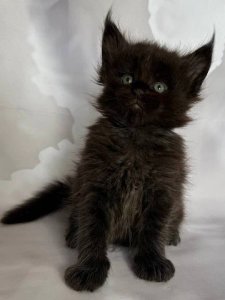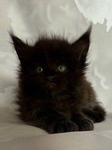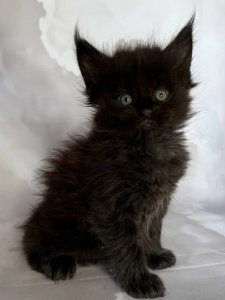 Introducing Flint, a breathtaking purebred Maine Coon kitten whose regal presence and playful spirit make him truly unforgettable. With his luxurious long fur, tufted ears, and magnificent fluffy tail, Flint embodies everything you love about this noble breed.