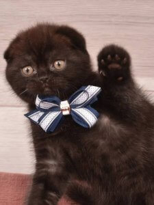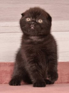 Frederick’s endearing round face and big, expressive eyes perfectly capture the charm of Scottish Fold kittens. His gentle nature and affectionate personality make him the perfect cuddle buddy. Even at just a few months old, Frederick already embodies his breed’s sweet and loving characteristics.