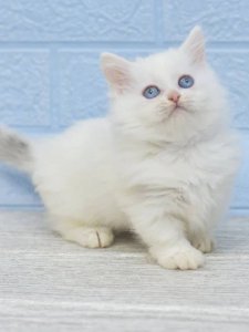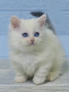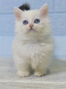 Freya’s short legs and long body perfectly capture the essence of Munchkin kittens. Her round eyes glisten with curiosity, and her soft, plush coat makes her irresistible to cuddle. At just a few months old, Freya already displays the delightful traits of her breed.