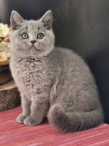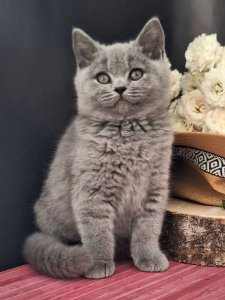 Gabriella’s short, plush coat and round face with chubby cheeks beautifully showcase the classic elegance of British Shorthair kittens. Her large, expressive eyes sparkle with warmth, inviting endless cuddles. Even at just a few months old, Gabriella embodies the timeless charm of her breed.