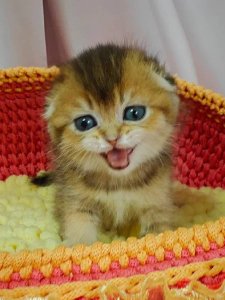 At just a few months old, Galaxy already embodies the classic traits of the Scottish Fold breed—gentle, loving, and always ready for cuddles. Whether she’s playfully pouncing on her favorite toy or curling up in your lap for a cozy nap, Galaxy is sure to bring endless joy and warmth to her future family.