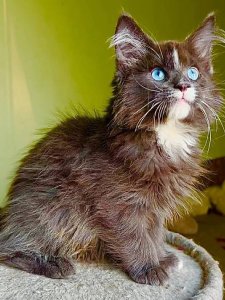 Meet Gem, the majestic and playful purebred Maine Coon kitten! With his luxurious long fur, tufted ears, and magnificent fluffy tail, Gem is a shining example of this beloved breed, known for its impressive size, striking beauty, and affectionate nature.