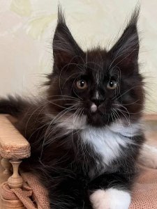 Even at just a few months old, Gerald displays all the hallmark features of Maine Coon kittens—including his robust build, striking green eyes, and a personality that’s equal parts bold and affectionate.