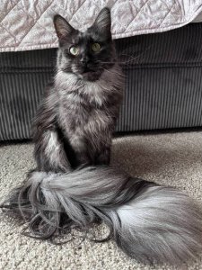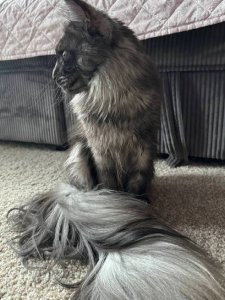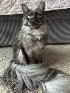 Say hello to Gerda, a stunning purebred Maine Coon kitten whose majestic looks are matched only by her lively and loving personality. With her long, luxurious fur, tufted ears, and fluffy tail, Gerda is the very definition of feline elegance and playfulness.
