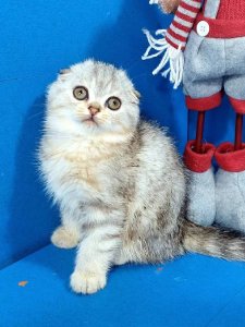 Her expressive round eyes and cute round face make her irresistible, while her cuddly personality ensures she’ll be a cherished companion for years to come. Gloria embodies the Scottish Fold kittens endearing qualities, making her the perfect fit for any loving home.