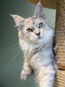 Meet Hakaton, the lovely Maine Coon kitten who combines regal looks with a fun-loving personality. With his luxurious fur and playful nature, Hakaton will surely steal your heart and become a beloved family member.