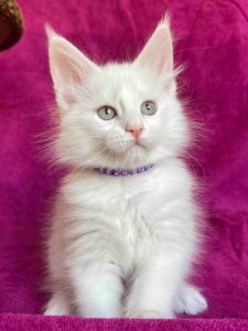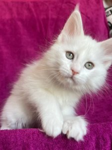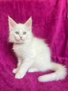 Introducing Helena, a dazzling Maine Coon kitten whose gentle heart and enchanting beauty will instantly capture yours. With her flowing long fur, striking green eyes, and elegant tufted ears, Helena is a true standout among kittens.