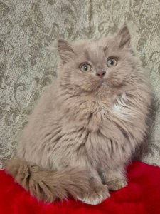 Meet Jackie, the adorable British Longhair kitten with a calm and gentle personality. Her long, silky fur, round face with chubby cheeks, and large, expressive eyes make her the picture of pure feline grace and sweetness.