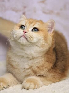 Jane’s round face, chubby cheeks, and large, expressive eyes perfectly showcase the hallmark features of the British Shorthair kittens. At just a few months old, she embodies the timeless beauty and gentle nature that make this breed a favorite among cat enthusiasts.