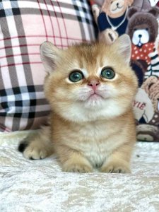 His soft, dense fur and signature round face—complete with adorable chubby cheeks—make him the perfect representative of British Shorthair kittens. One look into his big, soulful eyes, and you’ll understand why this breed is so beloved.