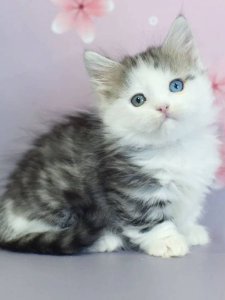 At just a few months old, Junona already displays the classic features of Munchkin kittens — from her signature short legs and long, elegant body to her round, twinkling eyes and soft, plush coat.