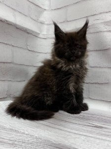 Meet Karina, the stunning Maine Coon kitten who combines beauty and personality in perfect harmony. Her luxurious coat and friendly demeanor make her the ideal example of this beloved breed, ready to capture your heart with every purr.