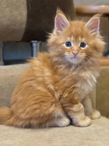 Meet Kevin, the majestic and playful purebred Maine Coon kitten — a true heart-stealer with his charming looks and lively spirit! With his luxurious coat and affectionate personality, Kevin is ready to bring endless joy into your home.