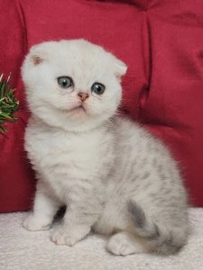 At just a few months old, Killian already exemplifies the hallmark features of Scottish Fold kittens—a round, adorable face, a plush, velvety coat, and an irresistible charm that makes him truly special. Whether playfully exploring his surroundings or curling up for cuddles, Killian is ready to fill your home with joy and warmth.